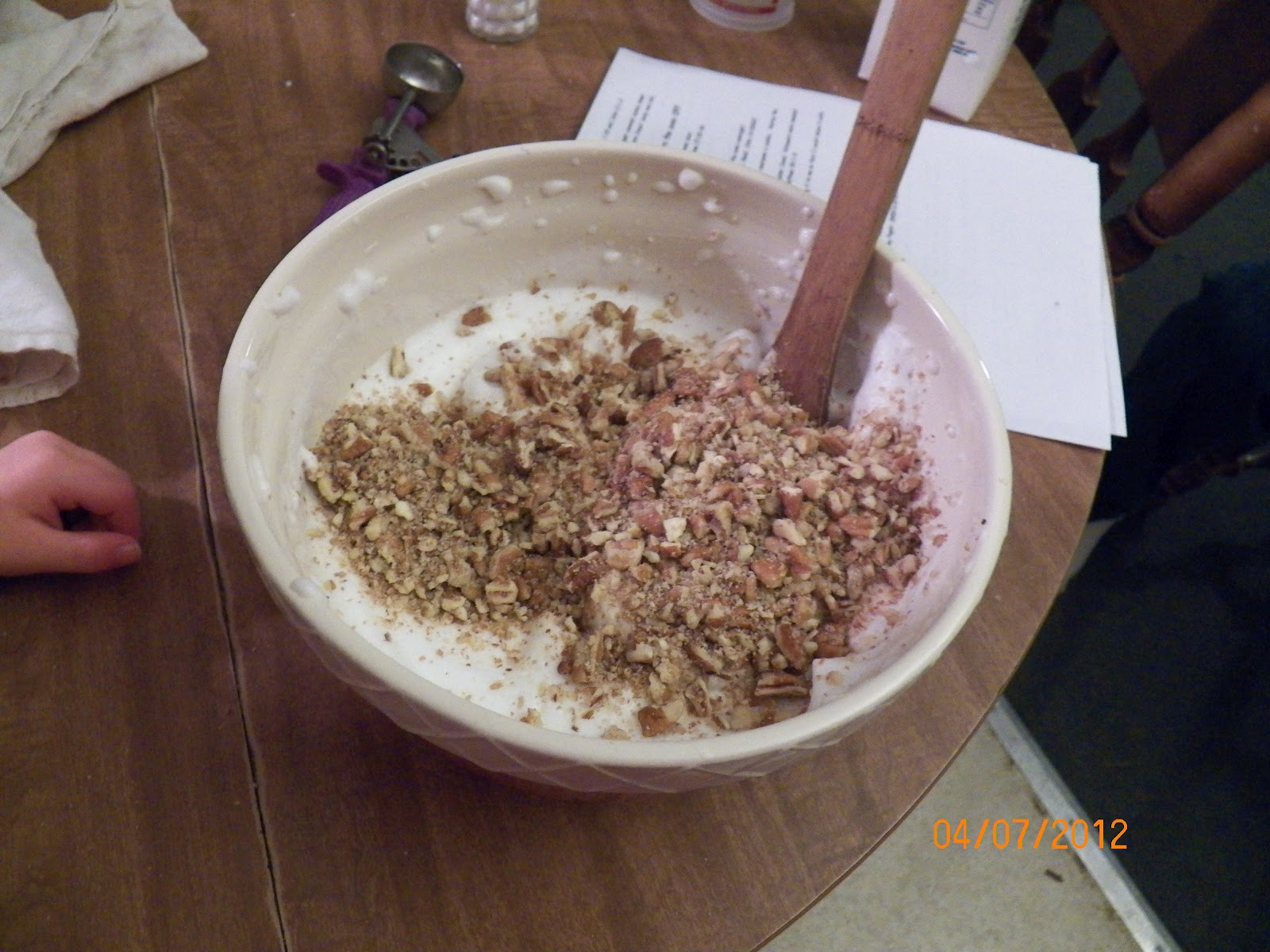 Fold in broken nuts. Drop by teaspoon onto waxed paper covered cookie sheet. Explain that each mound represents the rocky tomb where Jesus' body was laid. Read: Matthew 27:57-60